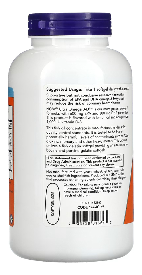 Ultra Omega 3D Now Foods 600Epa/300Dha 180Soft Produto Importado