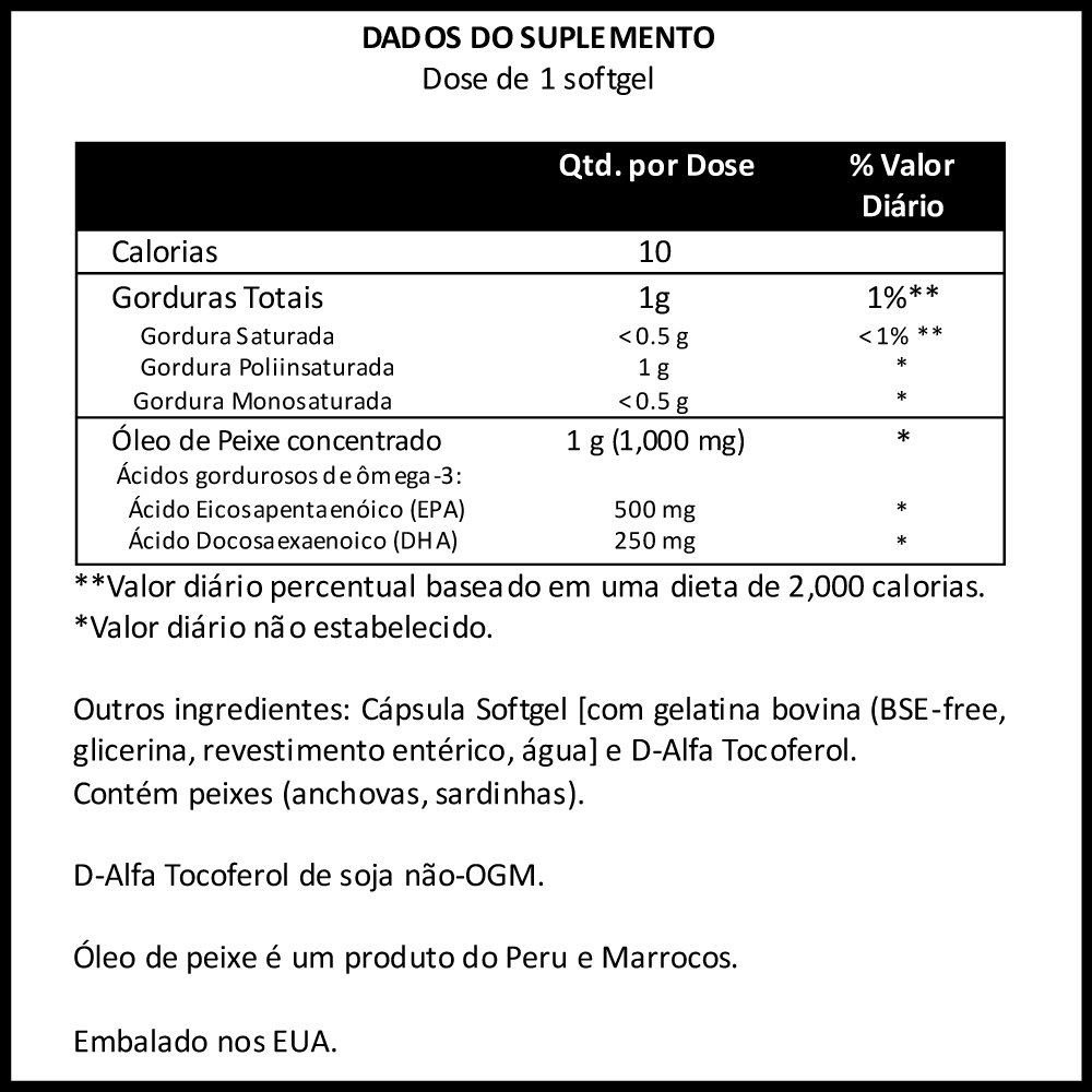 Kit Ultra Ômega3 500Epa/250Dha Now Foods 90Soft + Porta Cápsulas Destaque Chave: O Ultra Ômega 3 da Now Foods é um suplemento rico em ácidos graxos essenciais EPA (500mg) e DHA (250mg), conhecidos por apoiar a manutenção de uma função cognitiva saudável e contribuir para o bem-estar geral. Este suplemento é perfeito para quem busca complementar sua dieta com nutrientes essenciais. Formato Absorvível: Disponível em softgels fáceis de engolir, o Ultra Ômega 3 oferece uma forma conveniente e eficiente de consumir ácidos graxos essenciais. Os softgels são ideais para uma absorção otimizada, garantindo que você obtenha o máximo Destaque. Qualidade Importada com Disponibilidade Imediata: Este produto importado segue padrões internacionais de qualidade, assegurando sua eficácia e pureza. Disponível para entrega imediata, permite que você comece rapidamente a incluir este suplemento em sua rotina. Porta Cápsulas com Duas Repartições: O kit também inclui um porta-cápsulas prático, dividido em duas seções internas. Isso permite uma organização eficaz e separada de diferentes tipos de cápsulas ou pílulas. Composição de Alta Qualidade: Cada softgel contém 500mg de EPA e 250mg de DHA, extraídos de peixes de águas profundas. O produto é livre de metais pesados e contaminantes, garantindo um suplemento seguro e de alta qualidade. VALIDADE LONGA