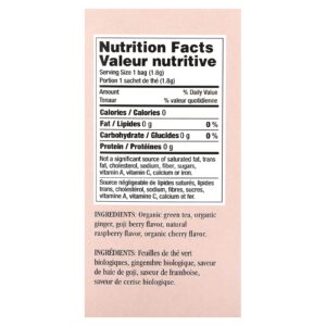Chá verde orgânico, gengibre orgânico, grânulos de goji berry, sabor de framboesa orgânica, orgânico, sabor de cereja.