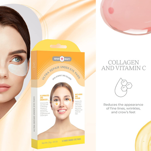 Revitalize a área sob os olhos com nossas almofadas embaixo dos olhos infundidas com vitamina C e colágeno. Essas almofadas são projetadas para rejuvenescer os olhos cansados e melhorar sua pele. Basta aplicá-los por 15 a 20 minutos e deixar os ingredientes poderosos fazerem sua mágica. Experimente redução do inchaço, diminuição das olheiras, melhora da elasticidade da pele e hidratação intensa. Transforme sua área sob os olhos e adote uma aparência jovem e revigorada. Experimente nossas almofadas embaixo dos olhos hoje e revele uma pele radiante e rejuvenescida. – REVIVA E ILUMINE: Nossas 5 almofadas embaixo dos olhos com vitamina C e colágeno revivem os olhos cansados, reduzindo olheiras, inchaço e linhas finas para uma aparência mais brilhante e rejuvenescida. – INGREDIENTES POTENTES: infundidas com vitamina C e colágeno, essas almofadas nutrem e promovem elasticidade, proporcionando hidratação e firmeza direcionadas ao seu área delicada sob os olhos. – Fácil aplicação: experimente o autocuidado sem complicações com nossas almofadas embaixo dos olhos. Basta aplicar, relaxar por 15 a 20 minutos e deixar a poderosa fórmula fazer sua mágica, deixando seus olhos revigorados e com aparência jovem. – SUAVES E VERSÁTEIS: adequadas para todos os tipos de pele, incluindo peles sensíveis, essas almofadas oferecem um tratamento caseiro semelhante ao de um spa. Cuide de si mesmo e revele uma área sob os olhos revitalizada que você vai adorar. – GARANTIA DE DEVOLUÇÃO DO DINHEIRO: Se você tiver algum problema ao usar as almofadas Repair Beauty Under Eye, entre em contato a qualquer momento para obter ajuda de nossos especialistas em cuidados com a pele. Responderemos o mais rápido possível! Se você não estiver totalmente satisfeito, nós o reembolsaremos integralmente.