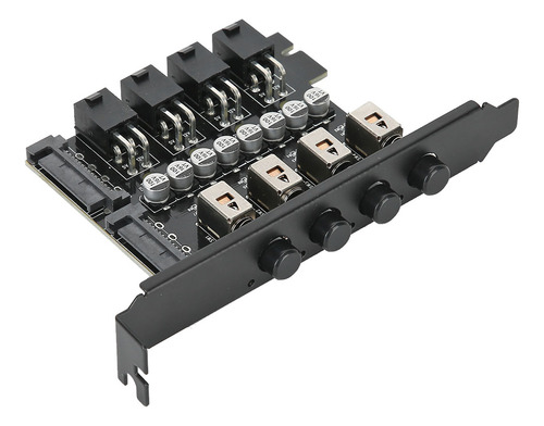 8 capacitores sólidos de grande capacidade para garantir entrada e saída de energia estáveis. Feito de PC espessado e endurecido de alta temperatura e SMT sem chumbo, durável de usar. Vem com 4 cabos de alimentação de 15 pinos, cada um deles com 60 cm de comprimento, economizando tempo e esforço (linha de alimentação padrão SATA de 15 pinos) Interruptor totalmente preto, PCB, moldura para melhor operação. Fácil de controlar 4 discos rígidos – Pode ser colocado em cascata e pode ser sobreposto para controlar mais caixas de disco rígido dispositivos, como ventiladores, etc.