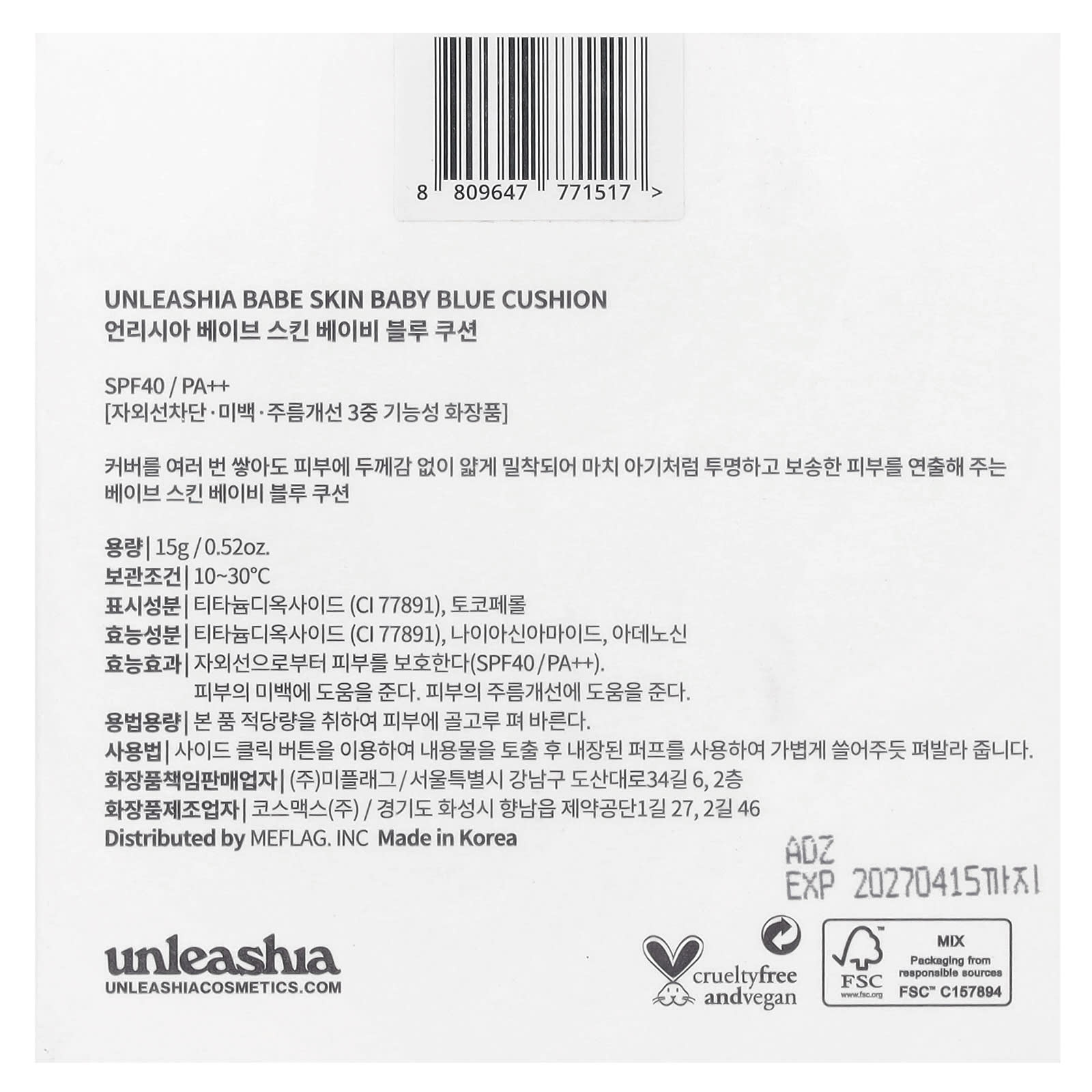 Unleashia Babe Skin Baby Blue Cushion FPS 40/PA++ 21C Baby Cheek 15 g (052 oz) – Unleashia Beleza Maquiagem Rosto Spray e Pó Fixador Sprays e pós fixadores K-Beauty.