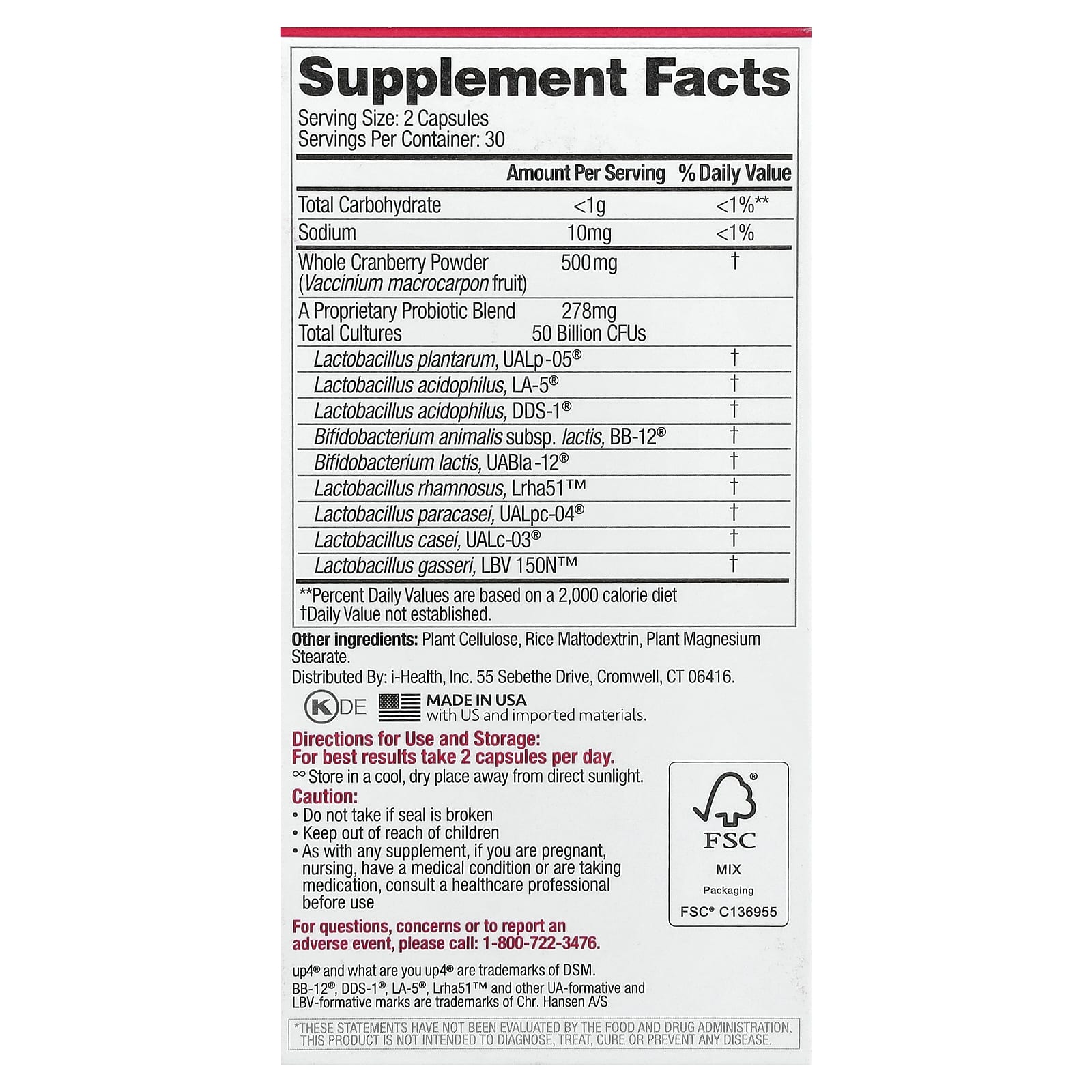 Se você está procurando algo feito especialmente para mulheres que aja naturalmente no seu corpo para mantê-la saudável, up4® Women’s foi feito pensando em você.Sua fórmula de quatro ações é feita com 9 estirpes probióticas robustas e cranberry inteiro em pó para reforçar a saúde do trato urinário, vaginal, digestivo e imunológico.Com 50 bilhões de UFCs, garantimos a potência até o prazo de validade.∞