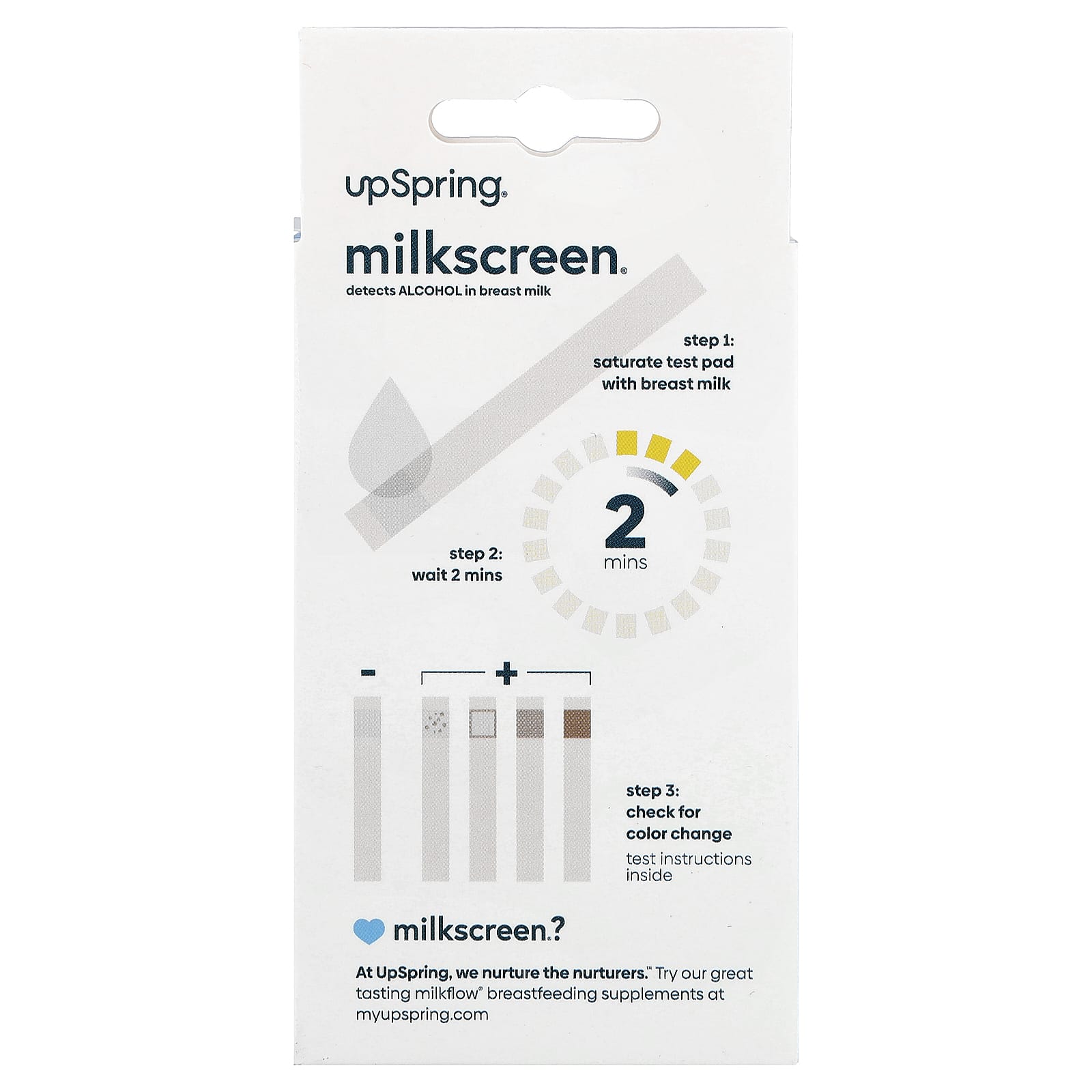 Saiba que seu suprimento de leite materno está pronto! Nossas tiras de teste para leite materno Milkscreen detectam álcool e proporcionam tranquilidade em apenas 2 minutos.