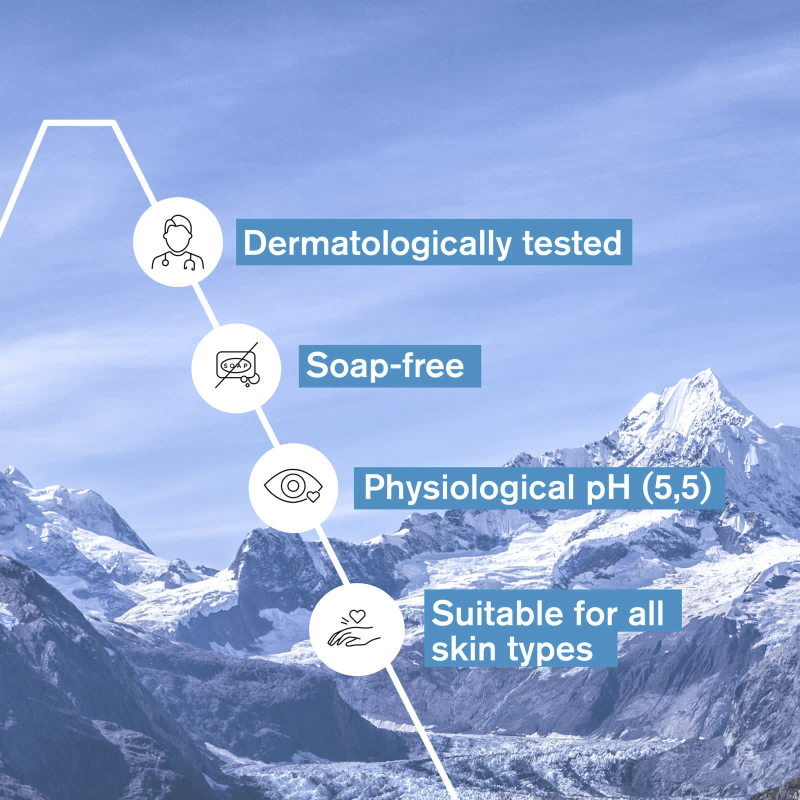 Este gel espumante refrescante limpa e respeita o filme hidrolipídico da pele com sua base de limpeza suave enriquecida com agentes de reposição lipídica.
