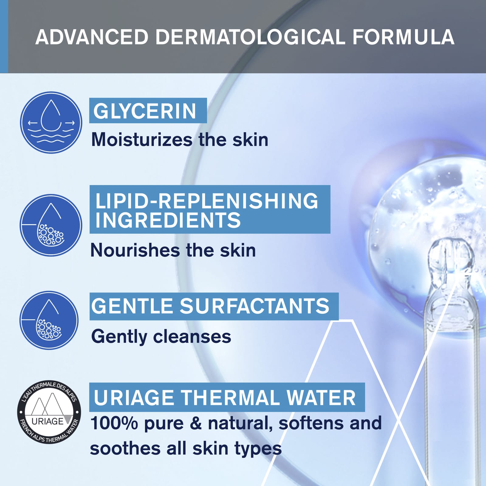 Uriage Gel Dermatológico Extra-Rico 500 ml (17 fl oz) – Uriage Beleza Limpeza Facial Sabonetes Faciais Banho e Cuidados Pessoais Banho Sabonete Líquido.