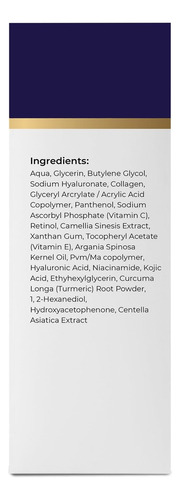 Combina hialurônico ácido, retinol e niacinamida para hidratar, combater o envelhecimento e revitalizar a saúde da pele. O ácido kójico melhora a pele texturiza e reduz a descoloração, dando ao rosto um brilho natural e luminoso.