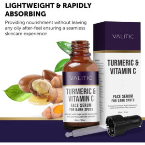 corretor de manchas escuras de 1 oz Sérum valítico com açafrão e vitamina C, junto com um complexo japonês, promove uma tez radiante e remove eficazmente as manchas escuras do rosto. Leve e de rápida absorção o sérum de vitamina C especialmente desenvolvido pela Valitic é facilmente absorvido pela pele, fornecendo nutrição sem sensação de oleosidade, garantindo uma experiência de cuidado facial confortável e eficaz. Antienvelhecimento – O ácido hialurônico, o retinol e a niacinamida trabalham juntos para oferecer um cuidado abrangente que hidrata, combate o envelhecimento e melhora a saúde geral da pele, alcançando uma aparência revitalizada.