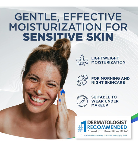 Informações de segurança: consulte as palavras-chave do público-alvo: hidratante facial, creme facial, hidratante, pele sensível, sem fragrância, sem parabenos, sem corantes, sem lanolina, sem formaldeído, ceramidas, ácido hialurônico, esqualano, glicerina, não comedogênico, cuidados com a pele, cuidados faciais, creme leve, hidratante diário, pele sensível, dermatologista recomendado, hidratante sem irritantes, cuidados pessoais, beleza, cosméticos faciais,