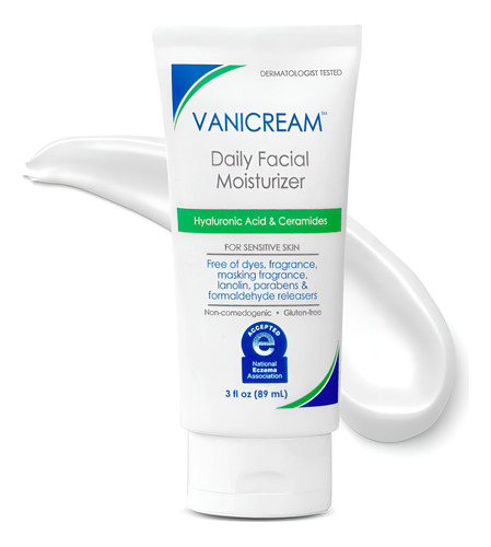 Hidratante facial diário Vanicream com ceramidas e ácido hialurônico Formulado sem irritantes comuns para peles sensíveis, 85 ml (pacote com 1) o