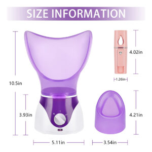 PEGUE UMA PARA CASA E VAPORIZE SUA BELEZA AGORA! Especificação: Capacidade do Streamer: 55 ml Cor: roxo Características: Levanta e firma a pele – Acelera o metabolismo, renova as células da pele; alivia a melanina e as rugas firmes, ajudando a restaurar a elasticidade e torna a pele firme, suave e delicada. Alivie a fadiga e a pressão – Este vaporizador facial é adequado para pele seca, oleosa e neutra, para uso prolongado, pode hidratar profundamente com eficácia, complementar a nutrição, diluir linhas finas, prevenir a pele opaca e remover a oleosidade. – Massageie a testa, pescoço e cabeça durante o vapor facial para aliviar a fadiga e relaxar. Prático de operar – você só precisa encher o vaporizador com água e pressionar o botão para baixo, então o vaporizador pressionará automaticamente a névoa fina para você, prático e fácil de operar. Bocal de vaporização completo e 2 configurações de controle – Bocal facial grande para ajudar a cobrir todo o rosto durante o vapor – O fluxo de vapor ajustável permite o máximo de conforto, controle e eficácia. Atendimento ao cliente Nós nos preocupamos com cada cliente, se você tiver alguma sugestão ou pergunta, sinta-se à vontade para entrar em contato com nossa equipe de atendimento ao cliente, sua opinião é muito importante e também é um grande incentivo para nós! O pacote inclui: 1 x vaporizador facial 1 x minifacial Mist 1 x escova Kit de pele de aço inoxidável de 4 peças. Aviso quente * O novo vaporizador facial terá um pouco de cheiro de plástico, não se preocupe, é normal e desaparecerá após algumas vezes de vaporização. Recomendamos deixar o vaporizador funcionar duas vezes antes do primeiro uso. * Mantenha uma distância segura entre o rosto e o vaporizador facial para evitar queimaduras, 10 polegadas é o melhor. * Para prolongar a vida útil do vaporizador facial, drene o tanque de água após cada uso e limpe. – ECONOMIZE TEMPO E DINHEIRO: Nosso vaporizador facial tem vaporizador de alumínio durável e seguro, tem função de desligamento automático e nível de vapor ajustável. O tanque de água de 55 ml permite 8 minutos de trabalho uma vez. Pode ser usado sem preocupações todos os dias, com resultados visíveis de cuidados com a pele. O vaporizador facial pode fornecer um spa de salão profissional em casa ou no escritório, economizando tempo e dinheiro. – LIMPEZA PROFUNDA: A névoa quente feita do vaporizador facial pode abrir os poros, a molécula de água penetra diretamente na pele, promovendo o metabolismo da pele, remove a sujeira e a maquiagem oleosa. É uma acne muito eficaz para cravos, manchas pigmentadas, congestão dos seios nasais. E a névoa fria do nano facial mister ajuda a hidratar e fechar os poros rapidamente. – SPA FACIAL EM CASA: Nosso vaporizador facial sem BPA não só ajuda a pele seca a adicionar umidade, abre os poros para uma melhor penetração, mas também reduz a acne. A névoa quente também pode limpar naturalmente a pele profundamente e melhorar a qualidade da pele. Tire sua mente do estresse do dia. – Design envolvente de 360 graus: nosso umidificador facial tem design de boca de pétalas de 360 graus, fazendo com que a nano névoa cubra seu rosto. Portanto, quando o vapor recém-criado sai do bocal, o design da boca em pétala garante que não haja água escorrendo. – Oferta requintada: cada conjunto de vaporizador facial inclui 1 vaporizador facial, 1 pulverizador de nano nano névoa, 1 escova facial e conjunto de 4 peças para remover cravos. Todas essas são suas ferramentas práticas para cuidar da pele!