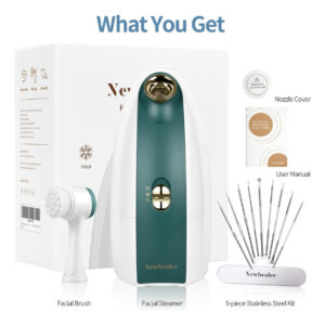 O Newbealer Facial Steamer é um dispositivo 3 em 1 que fornece ao seu spa um poderoso umidificador e difusor de aroma para ajudar a relaxar enquanto trata sua pele. Torne sua vida mais elegante e fácil. Combinando um elemento de aquecimento de cerâmica PTC avançado com um novo vaporizador, o vapor nano é até 20 vezes mais eficaz em penetrar na pele, o que a hidrata com mais facilidade. Desfrute de muitos benefícios de embelezamento da pele: previne erupções de acne e poros obstruídos Reduz cravos Minimiza o tamanho dos poros Promove a produção de colágeno e elastina para uma pele mais firme Melhora a circulação sanguínea em 20 segundos para dar mais brilho à pele Melhora a absorção de cremes de beleza, soros e peptídeos para máxima eficácia Promove a drenagem dos seios nasais e das vias aéreas para melhor respiração e ingestão de oxigênio O vaporizador facial profissional SPA+ está aqui para fornecer o nome Nano Scale Steam, penetrando na pele para uma limpeza e hidratação mais profundas, melhora o oxigênio Absorção para um brilho de pele mais saudável Conteúdo do pacote: vaporizador facial x 1 escova de limpeza facial x 1 kit de remoção de cravos de 9 peças x 1 tampa de bico x 1 cabo de alimentação x 1 manual do usuário x 1 Especificações: Nome do produto: vaporizador facial de aromaterapia quente e fria Tamanho do produto: 8,3* 4,3* 8,5 pol. Material: ABS, sem BPA Tensão: 110 V-125 V Potência nominal: 320 W/60 Hz Temperatura quente: 40 (104) Capacidade: 6 onças (180 ml) Tempo de trabalho: névoa quente 20 minutos, névoa fria 60 minutos OBTENHA A PELE LIMPA E RADIANTE QUE VOCÊ ESTAVA ESPERANDO! – [Tecnologia de vapor nanoiônico] O vaporizador facial é equipado com elementos avançados de aquecimento de cerâmica PTC com um novo vaporizador ultrassônico que ajuda a produzir nano nano nano ultrafinas de 0,3 m que permitem a absorção em um ritmo mais rápido pela pele ou pelo cabelo, penetrando profundamente nos poros. Design 3 em 1 – Vaporizador facial profissional, umidificador doméstico e difusor de aroma atendem a todas as suas necessidades. NOTA: O vaporizador facial Newbealer foi projetado para uso somente em tomadas de 110 ~ 125 volts. – [Modos de vapor quente e frio] O vaporizador foi projetado para fornecer uma função exclusiva que gera névoa nanoiônica quente e fria. O vaporizador permite 20 minutos de vapor quente ou 60 minutos de vapor frio que ajuda a abrir os poros, maximizando os efeitos hidratantes e encolhendo quando os poros estão limpos. Ele também apresenta neblina rápida, fria e quente, que sai em 1 segundo e 60 segundos, respectivamente. – [Spa profissional com aromaterapia e bico ajustável] O vaporizador permite que você adicione óleo essencial ou flores secas na cesta de aromas para permitir que a fragrância participe da abertura e desobstrução dos poros para remover sujeira, óleo e fuligem, reduzir acne e cravos. Ele também oferece 20 bicos ajustáveis para que você possa direcionar o vapor na direção que funciona para você, em vez de mover o rosto para o vapor. – [Material e design seguros para spa em casa] O vaporizador facial Newbealer é feito de ABS ecológico e material não irritante sem BPA, tornando-o uma boa opção para casa ou empresa para uma experiência de spa mais segura. O vaporizador foi feito para atender às suas necessidades modernas, com seu peso leve de 2,7 libras, design fino que o torna portátil e capacidade do tanque de água de 180 ml. – [Kit profissional de cuidados com a pele] Transforme sua rotina de cuidados com a pele com nosso pacote abrangente com o vaporizador facial 3 em 1, uma escova de limpeza facial de duas cabeças, um kit de remoção de cravos pretos de 9 peças, uma capa de bico e um manual. Medindo 8,7 x 4,5 x 9,6 polegadas e um comprimento de cabo de 4,9 pés, nosso pacote é fácil de usar e perfeito para presentear seus amigos e familiares. Além disso, oferecemos uma garantia de 12 meses para total tranquilidade.