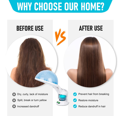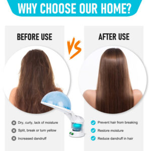 Importante: Alguns acessórios e peças são colocados na lateral do isopor. Esta máquina foi exaustivamente testada pelo fabricante, é normal ter algum resíduo de água no tanque de água. Como usar? Método de vaporização do cabelo: 1. Lave o cabelo e seque até a metade, não use a tampa de vapor para que o vapor penetre no couro cabeludo e leve umidade diretamente às raízes e à haste do cabelo 2. Coloque a máquina em uma mesa, encha com água e conecte a alimentação a ela 3. Pressione o botão liga/desliga e depois o botão de vapor, o vapor sairá em 5-6 minutos, então você pode começar a usar 4. Tempo de vapor de 10 a 15 minutos Método de vaporização facial: 1. Lave o rosto com um limpador facial antes de cozinhar 2. Coloque o vaporizador firmemente sobre a mesa, adicione água e conecte à fonte de alimentação principal. 3. Forneça um pouco de água até que a água atinja o limite superior. Pressione o botão Steam ON. 4. Coloque a cabeça na tampa com cuidado e ajuste a altura da cadeira adequadamente. 5. Comece o tratamento facial, a distância de segurança é de 30 a 50 cm do orifício de pulverização, para que seu rosto não fique muito quente, tempo de vapor de 10 a 15 minutos. Nota quente: 1. Não cubra a cabeça abaixo da testa. 2. Forneça um pouco de água limpa (entre o limite superior e o limite inferior). 3. Normalmente, 5 a 15 minutos de tratamento seriam suficientes. 4. Desligue o vaporizador após o uso e despeje-o na água até que a água esfrie para evitar que seja escaldada. 5. Por favor, coloque uma toalha cobrindo o ombro para evitar queimaduras de água ao cuidar do cabelo. 6. Quando o vaporizador é usado pela primeira vez, um pouco de água pode permanecer no tanque de água. Esta é a água residual usada para inspeção na fábrica e garantimos que o produto que você recebe seja totalmente novo Especificação: Potência: 350 W Tensão nominal: AC110-120V Frequência nominal: 60 Hz Temperatura deste vaporizador: 40 graus Tamanho do item: 8,66* 6,89* 5,63 polegadas – FUNÇÃO DE OZÔNIO PARA NÉVOA ULTRAFINA – Experimente nosso vaporizador facial e de cabelo com um atomizador ultrassônico produzindo uma névoa ultrafina de 1-5 hum para rápida absorção no cabelo ou na pele. Melhorando a saída de vapor, a função UV de ozônio garante uma limpeza completa e maximiza a eficácia do tratamento. – Design versátil de mesa 2 em 1 (cabelo, rosto e umidificador) – O vaporizador facial e para cabelo projetado para uso doméstico oferece multifuncionalidade. Ele serve como vaporizador para tratar cabelos quebradiços e danificados, vaporizador facial para tratar poros e pele seca ou umidificador para melhorar a qualidade do ar ao redor. Seu design compacto de mesa garante conveniência, tornando-a a escolha ideal para rotinas de cuidados pessoais em casa ou em um salão de beleza. – POROS REFINADOS E PELE MACIA – Utilizando uma névoa ultrafina, nosso vaporizador facial abre e purifica eficazmente os poros, preparando suavemente a pele para eliminar células mortas, sujeira, excesso de óleo e maquiagem residual. Esse processo limpa completamente os poros, esfolia e hidrata profundamente a pele, resultando em uma tez fresca, suave, úmida e radiante. – HIDRATAÇÃO E ABSORÇÃO DE TRATAMENTO APRIMORADAS – Nosso vaporizador de cabelo para cabelos naturais possui um gerador de ozônio embutido que combate a coceira e a caspa, hidratando e hidratando simultaneamente o cabelo. Além disso, otimiza a absorção de condicionadores e vários tratamentos, aumentando sua eficácia e produzindo resultados superiores. – SISTEMA DE ALERTA DE SEGURANÇA INTELIGENTE – O vaporizador de rosto e cabelo possui um sistema inteligente de aviso de segurança. Quando o nível da água está baixo, um alerta sonoro avisa você e, se o tanque de abastecimento de água secar, a unidade será desligada automaticamente. Esse design meticuloso prioriza sua segurança durante o uso do produto.