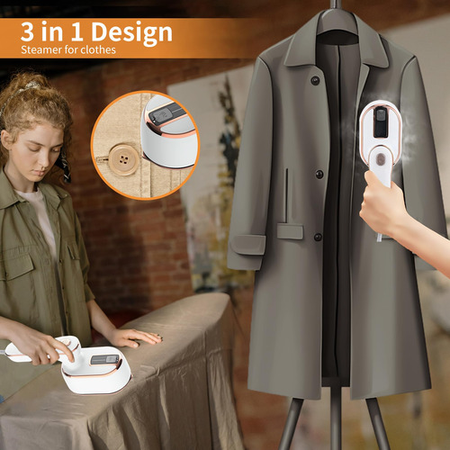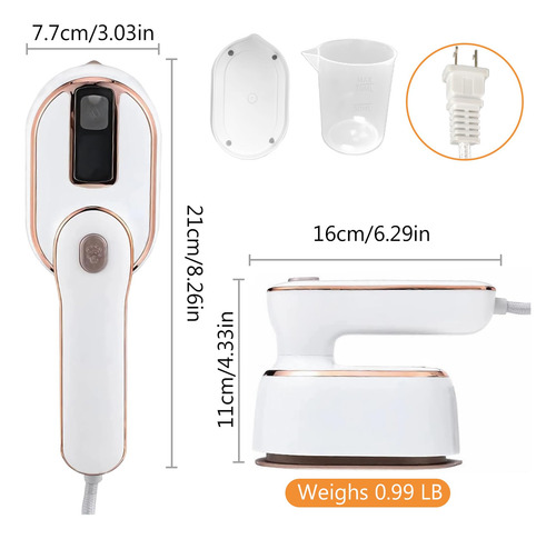Ferro a vapor de viagem, vaporizador portátil de roupas Travel Mini, vaporizador de roupas portátil, portátil para viagens, 180 giratórios, para passar roupas e cozinhar a vapor, 2 em 1, itens essenciais para dormitórios, manual para roupas, multidirecional, aplicável, adequado para roupas de todos os tamanhos/espessuras — Ótimo design: nosso ferro a vapor para roupas possui um design elegante e funcional que é perfeito para viajantes e uso doméstico parecidos. (Preste atenção aos padrões de eletricidade para viagens internacionais) – Mini e leve: seu tamanho compacto e sua construção leve o tornam incrivelmente portátil, garantindo que você possa transportá-lo facilmente aonde quer que vá. Adequado para roupas de todos os tamanhos/espessuras. – Alça versátil: a alça deste vaporizador portátil pode ser girada 180 graus, facilitando o alcance até mesmo das rugas mais complicadas de suas roupas. – Tanque de água generoso: com 100 ml tanque de água com capacidade, você pode vaporizar várias roupas sem reabastecer constantemente, economizando tempo e esforço. – Potente e rápido: este vaporizador oferece alta potência e aquece rapidamente, proporcionando uma remoção rápida e eficiente de rugas. Além disso, oferece uma mudança conveniente para o modo vaporizador, com o vapor pronto para ser ejetado em apenas 3 segundos.