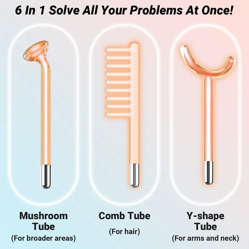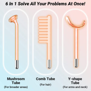 Varinha facial de alta frequência — tecnologia de alta frequência 100% segura e natural. Não importa qual seja sua pele, não importa qual seja o resultado final desejado, a varinha facial de alta frequência TUMAKOU sempre usou tecnologia 100% segura e natural para fornecer o que você precisa; desta vez, o conjunto de 6 peças laranja TUMAKOU de alta frequência lhe dará uma surpresa diferente; aperfeiçoe sua vida e faça você sentir vontade de voltar no tempo! – 6 tubos de vidro para todas as suas necessidades A máquina de alta frequência Umakou tem seis tubos de vidro de formatos diferentes, atendendo a todas as suas necessidades. 1* tubo de cogumelo, 1* tubo de curvatura, 1* tubo de língua, 1* tubo em forma de Y e 1* tubo de tungstênio. O tubo de cogumelo é adequado para áreas mais amplas, o tubo é usado para cabelos, o tubo de língua é adequado para a área ao redor dos olhos, o tubo de curvatura é adequado para áreas mais amplas, o tubo é usado para cabelos, o tubo de língua é adequado para a área ao redor dos olhos, o tubo de curvatura é adequado para áreas mais amplas, o tubo é usado para cabelos, o tubo de língua é adequado para a área ao redor dos olhos O tubo nasal em forma de Y é adequado para braços e pescoço, o tubo de tungstênio é adequado para corpo, testa e outras áreas mais amplas. – Nível ajustável que melhor combina com você Quanto maior o nível, melhor o efeito! Mas recomendamos testar a força manualmente antes de usá-la pela primeira vez e depois usá-la onde quiser. Conecte a unidade principal TUMAKOU à fonte de alimentação, ligue e gire o botão para ajustar o nível, aumente o nível no sentido horário e diminua o nível no sentido anti-horário.Atenção: não deve ser usado por mais de 10 segundos na mesma posição! Certifique-se de continuar usando TUMAKOU em alta frequência! – Fácil de usar e fácil de transportar. Você só precisa escolher diferentes acessórios para tubos de vidro de acordo com suas necessidades e, em seguida, escolher o nível adequado para começar; o design é compacto e fácil de transportar, você pode desfrutar de sua própria varinha facial de alta frequência em casa ou enquanto viaja, o que é conveniente e economiza tempo. – Garantia de um ano e melhor serviço A missão da TUMAKOU de fornecer produtos satisfatórios começou há muitos anos. Oferecemos 1 ano garantia; Estamos aqui para lhe oferecer o melhor atendimento ao cliente! Se você não estiver satisfeito com esta varinha de alta frequência TUMAKOU, nossa equipe de atendimento ao cliente estará esperando por ajudá-lo em 24 horas.