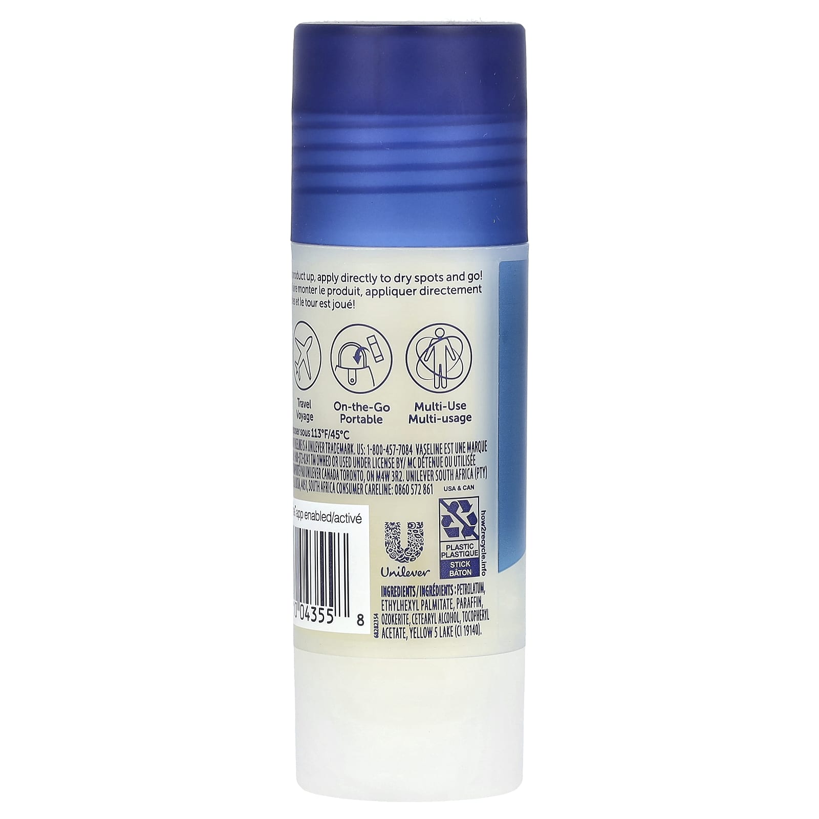 Oferece à pele seca o alívio que se espera da Geleia Rejuvenescedora Vaseline®, mas em um bastão Portátil e à prova de sujeira, restaurando a pele ressecada a qualquer hora e em qualquer lugar.