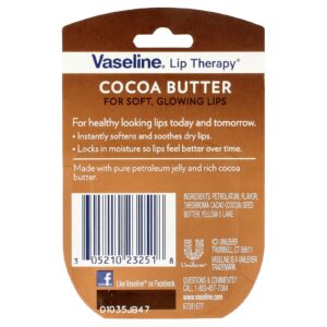 Vaseline Lip Therapy Manteiga de Cacau 7 g (025 oz) – Vaseline Banho e Cuidados Pessoais Lábios Bálsamo Labial.