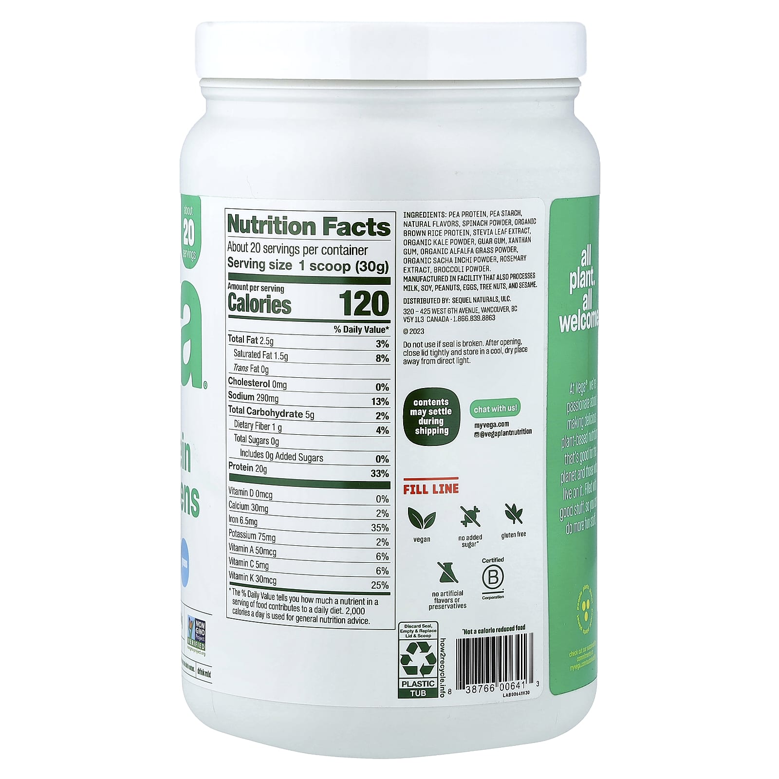 Vega Proteína à Base de Plantas e Verduras Baunilha 614 g (1 lb 57 oz) – Vega Nutrição Esportiva Proteína Proteína Vegetal Mistura Proteica à Base de Plantas.