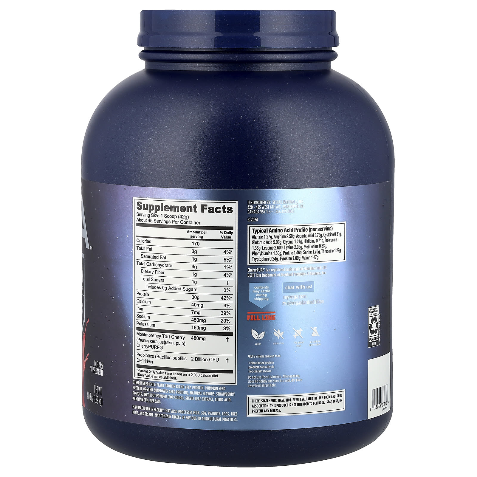 Com cerca de 12 g de EAAs, 5 g de BCAAs e 5 g de ácido glutâmico para ajudar na resistência e recuperação e de cereja azeda para reduzir a dor muscular perceptível.