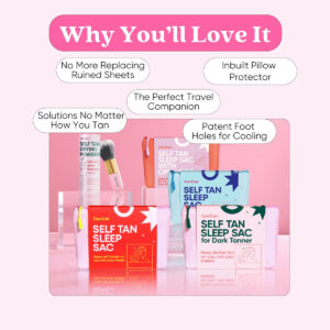 Cooling Silky Poly – Tan Fan only uses premium-grade materials to make the Self Tan Sleep Sac with a custom, anti-absorbent weave to keep your tanning lotion on you without transfer onto your sheets. Only available from us – designed specifically to allow breathability by having double the holes so you stay cool and comfy – Cooling Silky Poly – Tan Fan only uses premium-grade materials to make the Self Tan Sleep Sac with a custom, anti-absorbent weave to keep your tanning lotion on you without transfer onto your sheets. Only available from us – designed specifically to allow breathability so you stay cool and comfy. PATENT APPROVED D1,022,529 – Keeps Sheets Clean – If you love pristine crisp white sheets and a self tan without the stains or smells – you can now have both with the Tan Fan Sleep Sac. Our customers love the high quality, its comfort, ease of use and how it provides a great sleeping experience without feeling confined or hot. Now you dont have to wear hot sweat pants or use dark colored bedding – just wake up bronzed with clean white sheets. PATENT APPROVED D1,022,529 – 100% Comfort That Customers Love – Tan Fans patent-approved fabric ensures 100% comfort without stickiness or rubbing, providing a streak-free, blotch-free self-tan. Our Customers love the breathable, ventilated design that promotes cooling and prevents overheating during sleep and also love its roomy fit, soft fabric and ease of washing. PATENT APPROVED D1,022,529 – Discover What 26M+ Self Tan Princesses Are Buzzing About On Socials – this is the invention you have been waiting for! game-changer – the best purchase you will ever buy! larger than a twin bed so I can spread out (90.5 x 47.2). I love the built-in pillow protector and foot openings to keep cool. PATENT APPROVED D1,022,529 – Tan Fan No Questions Asked Guarantee – we have a 2 year guarantee because we believe in our products. If you have any problems we are here for you 24/7