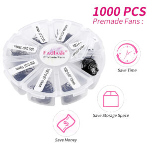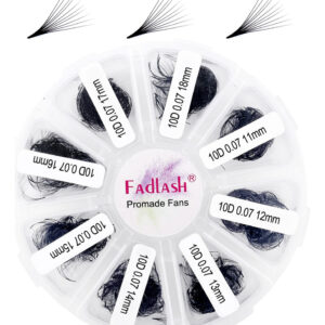 1000 unidades de ventiladores pré-fabricados Detalhes das extensões de cílios Ventiladores: 5D 8D 10D 12D 14D 16D 20D Espessura: 0,05 0,07 0,10 Curvatura: C D Comprimento único: 12-16 mm Comprimento misto 9-16 mm/15-20 mm/11-18 mm/13-16 mm Cor: preto/rosa claro/laranja/marrom claro – Escolha econômica: os ventiladores pré-fabricados FADLASH vêm em pacotes de 1000 ventiladores (+ -2%), 3-4 centavos por ventilador. Apenas metade do preço dos outros pacotes de 12 linhas para cada ventilador. As extensões de cílios de ventiladores pré-fabricados FADLASH são as soluções mais econômicas. – Fácil de usar: as extensões de cílios de ventiladores soltos são mais fáceis de usar durante o trabalho em comparação com as bandejas de extensão de cílios de fita normal. Você pode pegar e aplicar rapidamente os ventiladores pré-fabricados de cílios com uma pinça, os ventiladores pré-fabricados não estão presos à fita, os ventiladores pré-fabricados não se desfazem e as extensões de cílios estão limpas sem deixar resíduos. – Base fina: todas as nossas bases pré-fabricadas são finas para facilitar a aplicação e não têm muito adesivo, são confortáveis de usar. Compre conjuntos naturais híbridos e conjuntos finos com uma aparência muito dramática. – Material de alta qualidade: todos os ventiladores de cílios pré-fabricados à mão são feitos com PBT coreano de alta qualidade. Muitas cores como preto, rosa claro, laranja, marrom claro e 8 cores misturadas estão disponíveis. É a melhor escolha para extensão de cílios. – Pós-venda: A FADLASH pode oferecer compra de logotipo e atacado, além de reembolso total em caso de problemas. Temos orgulho de oferecer o melhor atendimento ao cliente possível. Se você tiver algum problema, entre em contato conosco, atenderemos às suas necessidades.