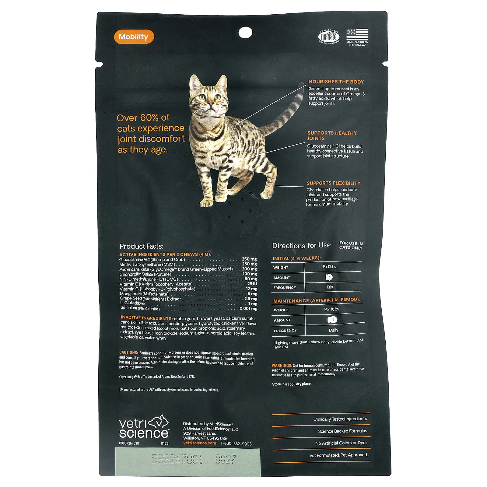 VetriScience GlycoFlex® Plus Quadril e Articulações Saudáveis Para Todos os Gatos Frango 30 Cápsulas Mastigáveis 60 g (212 oz) – VetriScience Pets Suplementos para pets Suplementos para gatos Apoio para quadril e articulações de gatos.