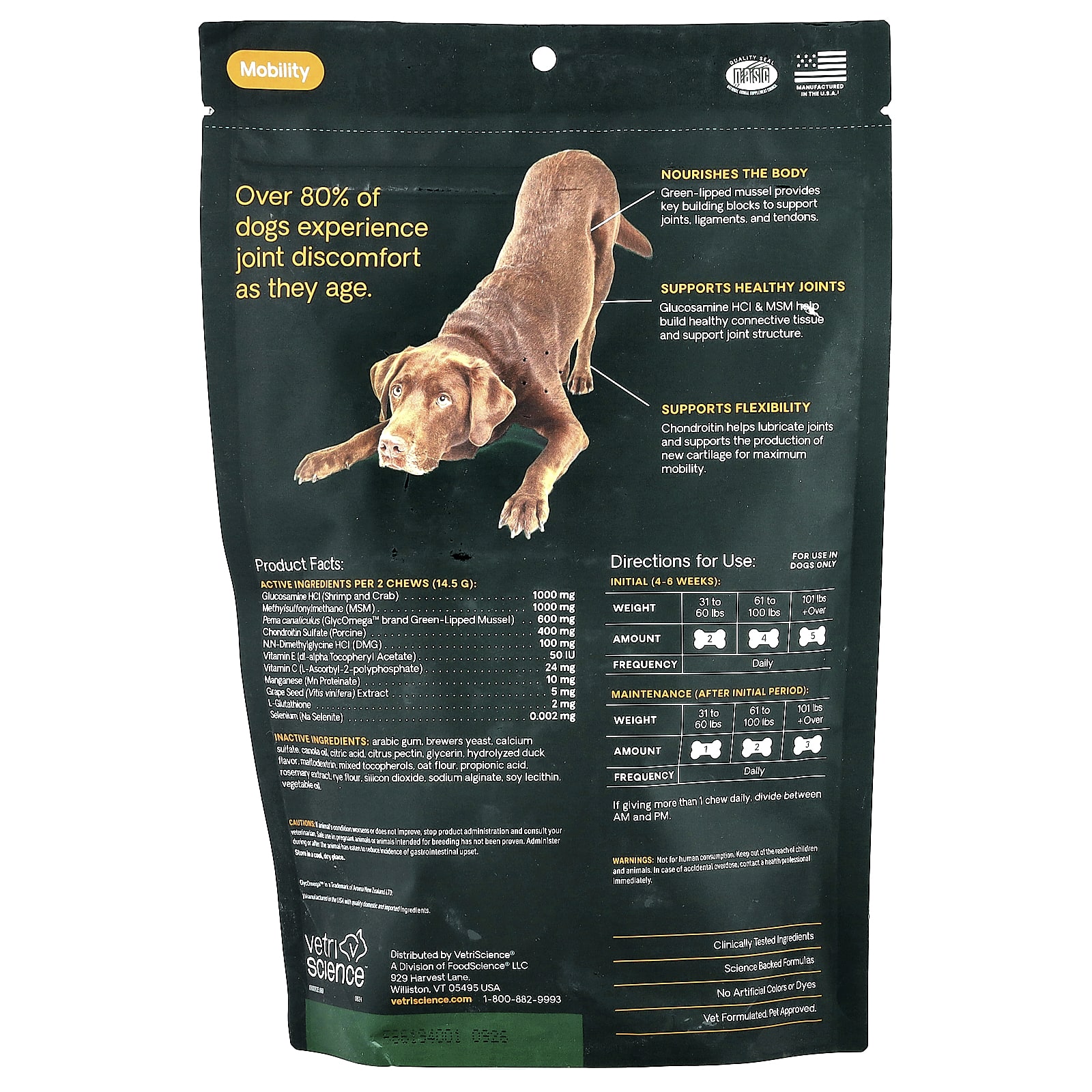 VetriScience Quadril e Articulações Saudáveis Força Máxima Para Cães Pato 60 Cápsulas Mastigáveis 435 g (1534 oz) – VetriScience Pets Suplementos para pets Suplementos para cães Apoio para quadril e articulações de cães.