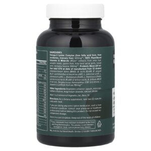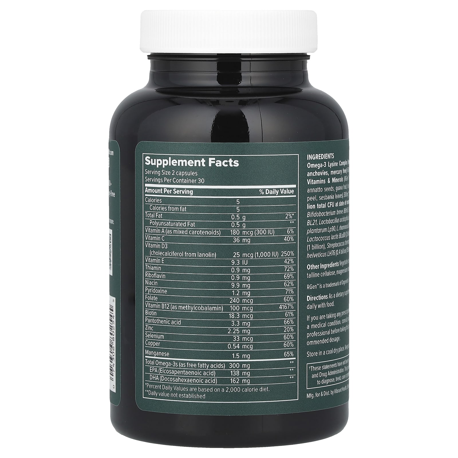 Ingredientes Principais: Complexo de lisina Ômega-3 (forma de ácido graxo livre, de anchovas, mercury free) 600mg **; 100% plant-based vitamins & minerals (rgen” extracts from amla fruit, sementes de urucum, goiaba, partes aéreas do manjericão santo, casca de limão, folhas de sesbania) 300 mg **; mistura probiótica (total de 20 bilhões de UFCs na data de fabricação de 12 estirpes) bifidobacterium breve bbr60, b. lactis bla80, b. longum bl21, Lactobacillus acidophilus LA85, l. paracasei lc89, l. plantarum lp90, l. rhamnosus lra05, l. rhamnosus lra66, Lactococcus lactis bla80 (2 bilhões cada), b. bifidum BB32 (1 bilhão), Streptococcus thermophilus st81 (0,6 bilhão), l. helveticus lh76 (0,4 bilhão) 150 mg.