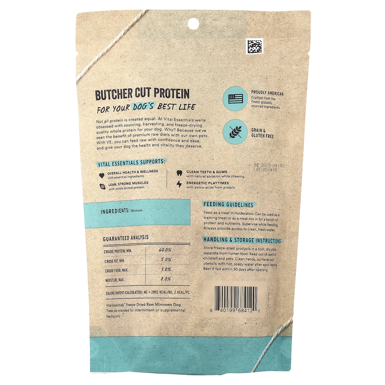 Alimente como uma guloseima com moderação. Pode ser usado como um lanche de treino ou como uma mistura de refeições para um reforço de proteínas e nutrientes. Supervisione enquanto se alimenta. Sempre forneça acesso a água limpa e fresca.