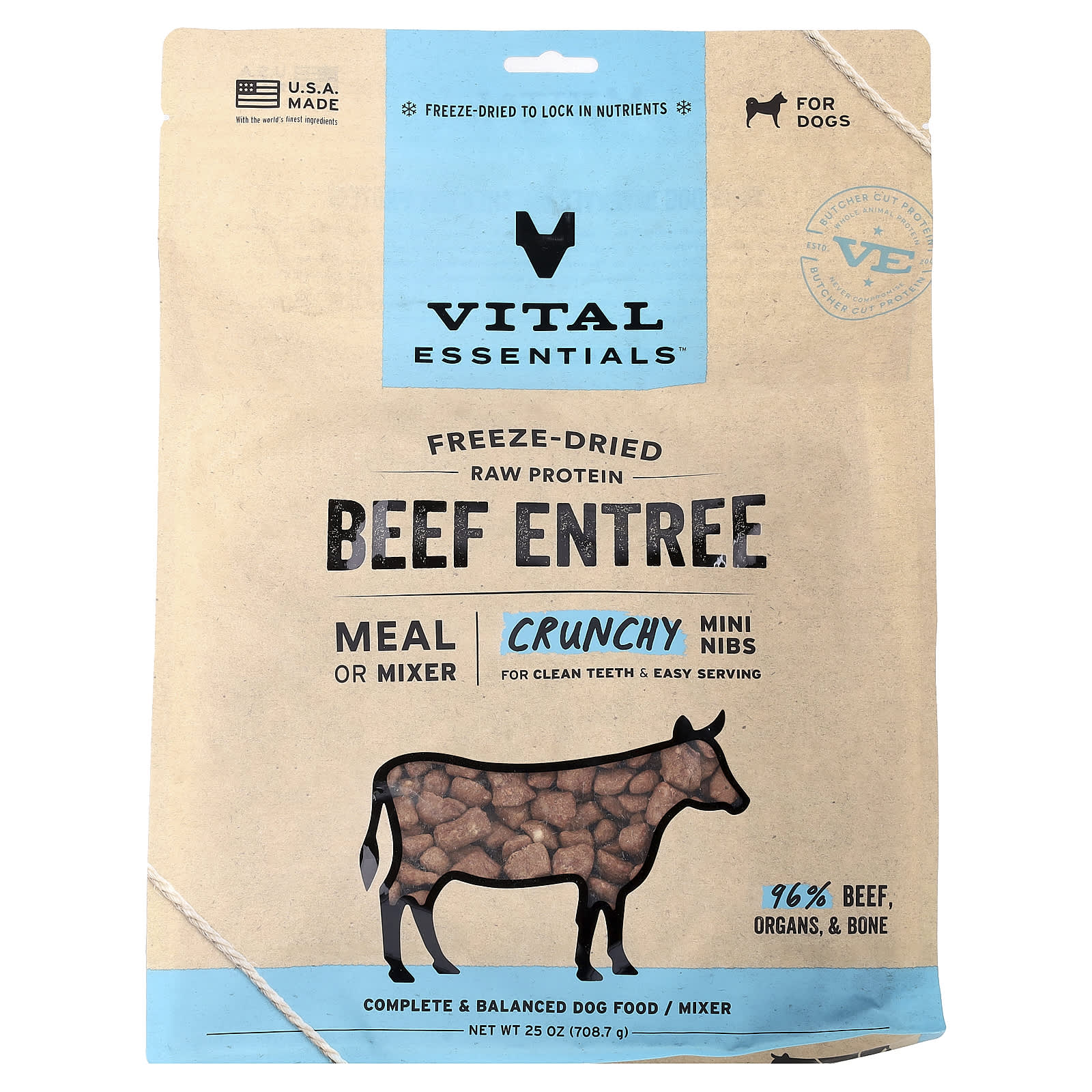 Vital Essentials Proteína Crua Liofilizada Mininibs Crocantes Para Cães Entrada de Carne 7087 g (25 oz)