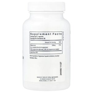 (como uma mistura complexa de magnésio, 50% de glicinato de magnésio, 50% de malato de magnésio)