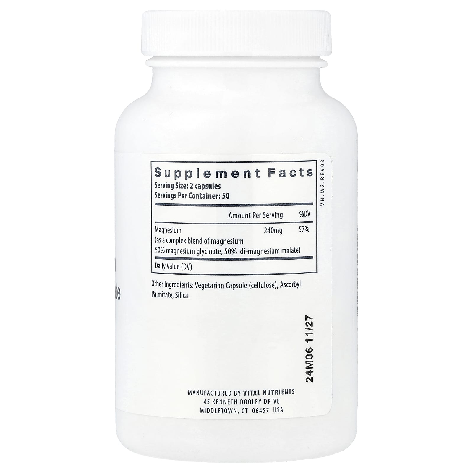 Vital Nutrients Magnésio 240 mg 100 Cápsulas Veganas (120 mg por Cápsula)