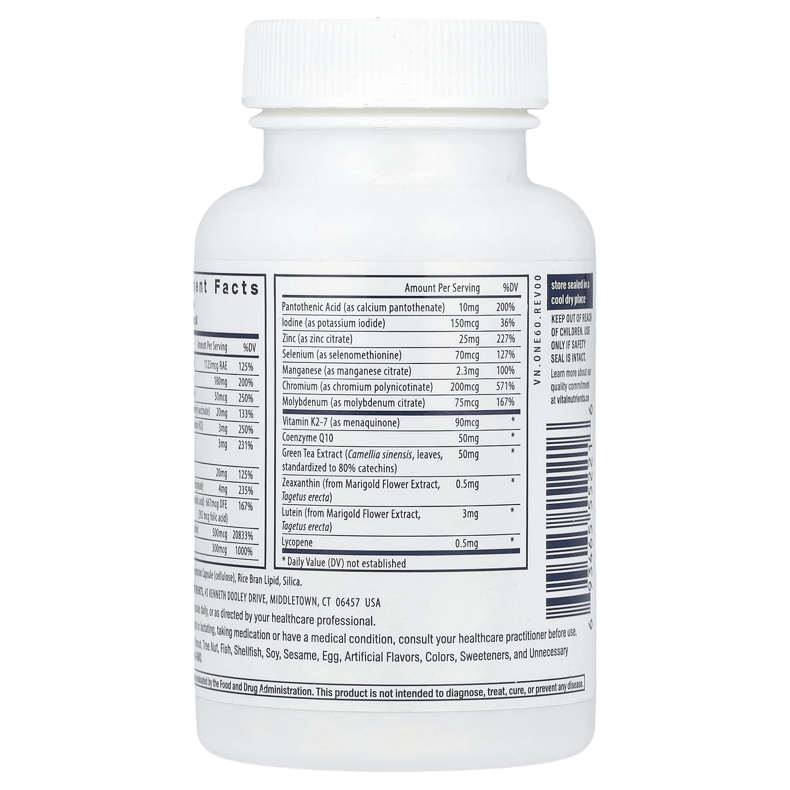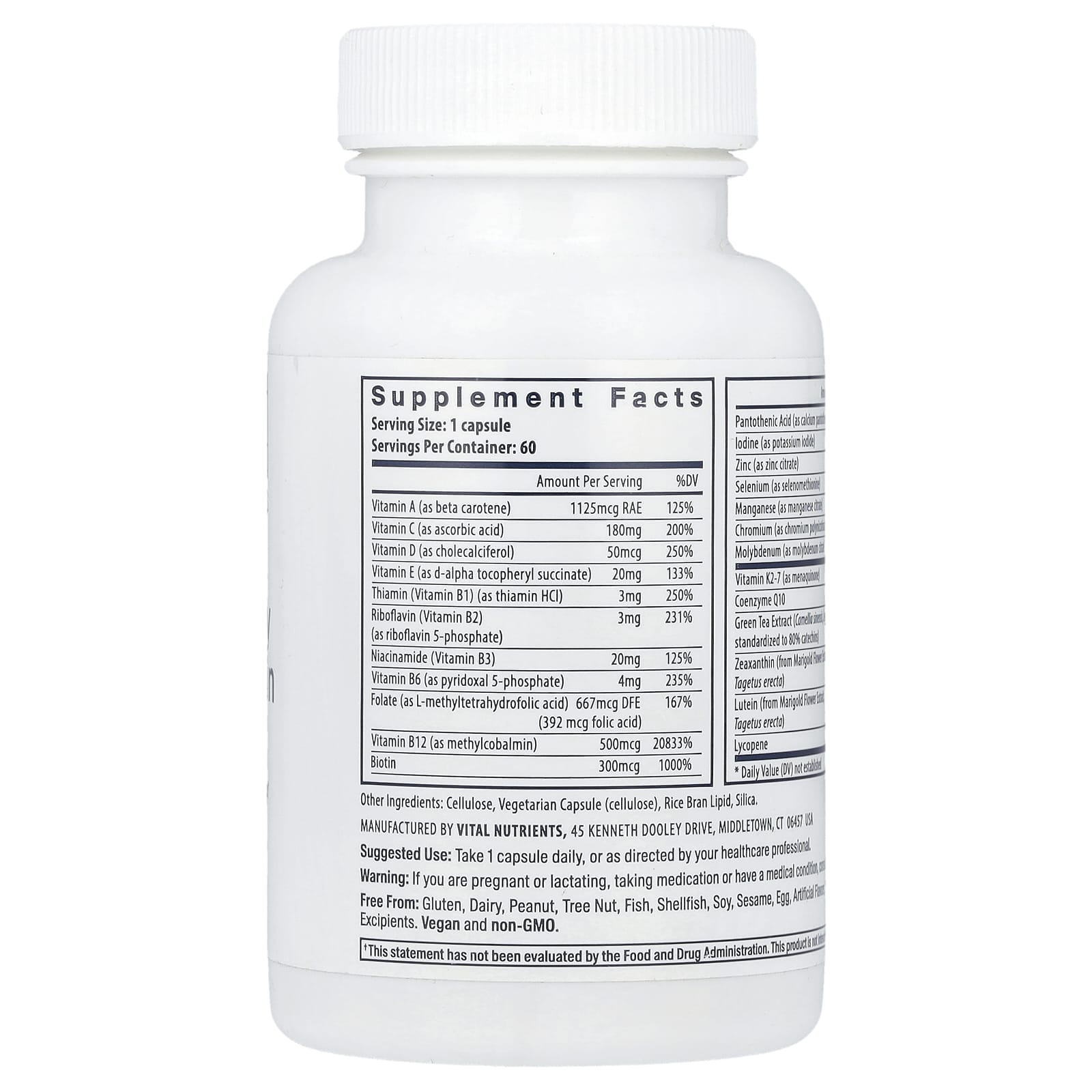 Vital Nutrients Uma Vez Multivitamínico ao Dia 60 Cápsulas Veganas – Vital Nutrients Suplementos Vitaminas Multivitamínicos.