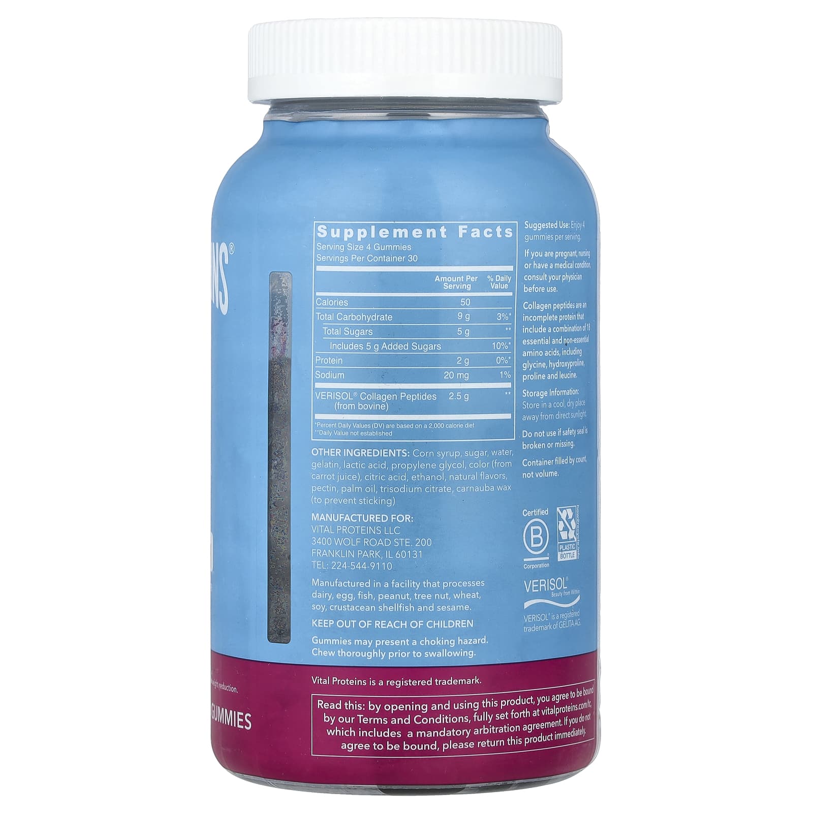 Vital Proteins Gomas de Colágeno Framboesa 120 Gomas (0625 g por Goma) – Vital Proteins Suplementos Ossos, Articulações e Cartilagem Colágeno, Suplementos.