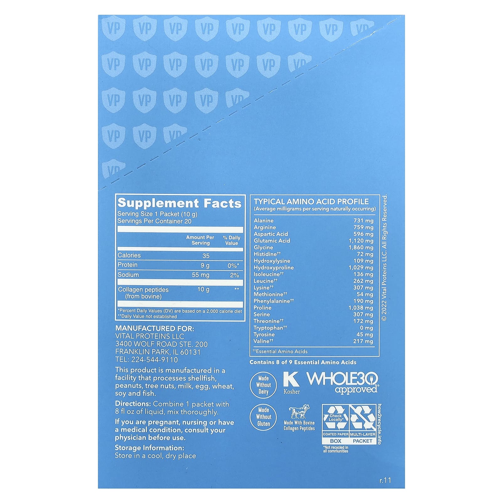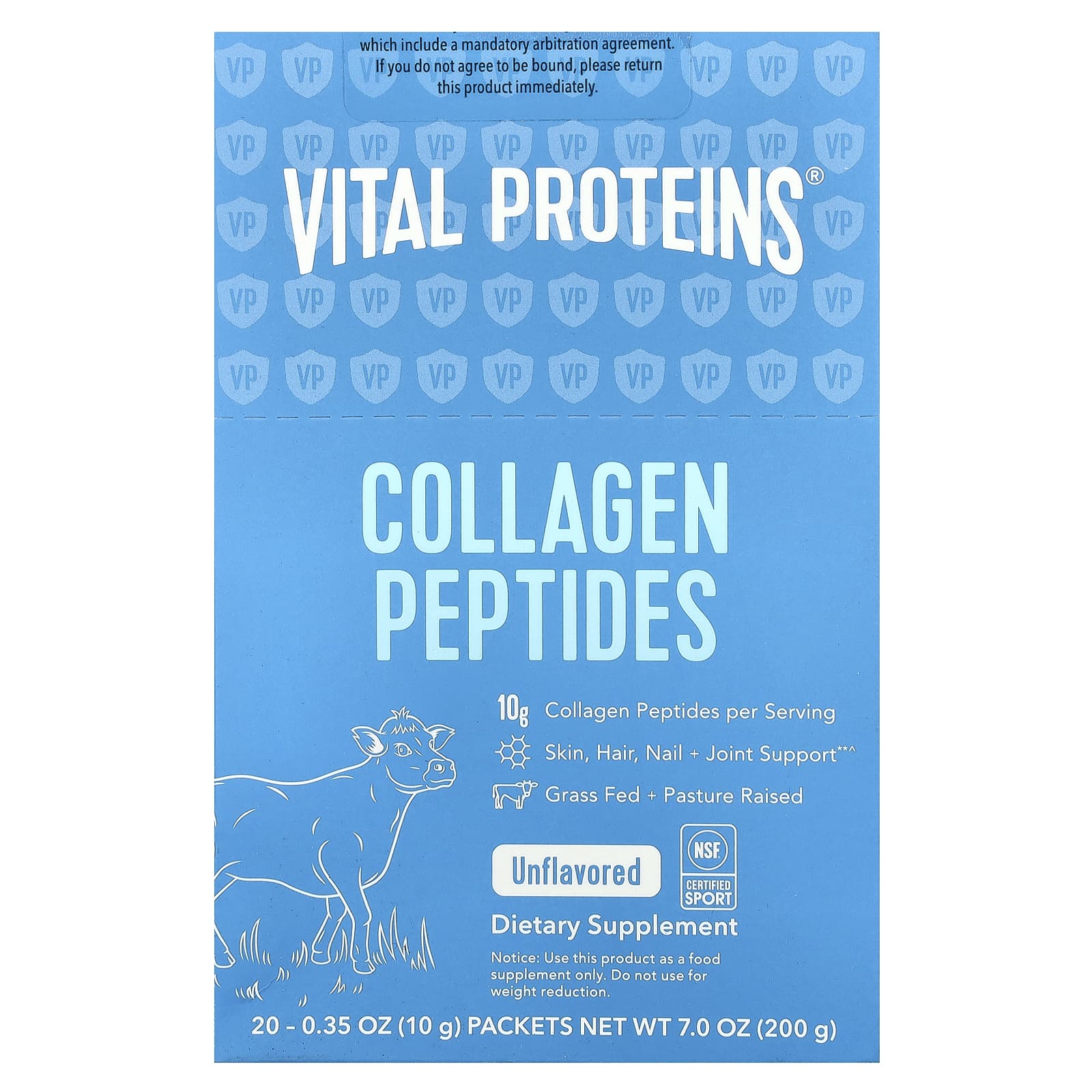 Vital Proteins Peptídeos de Colágeno Sem Sabor 20 Pacotes 10 g (035 oz) Cada – Vital Proteins Suplementos Ossos, Articulações e Cartilagem Colágeno, Suplementos.