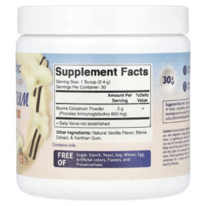 Vitamatic Colostro Bovino de Gado Criado no Pasto Baunilha 72 g (253 oz) – Vitamatic Suplementos Saúde Intestinal Colostrum.