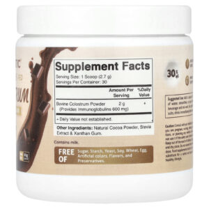 Vitamatic Colostro Bovino de Gado Criado no Pasto Chocolate 81 g (285 oz) – Vitamatic Suplementos Saúde Intestinal Colostrum.