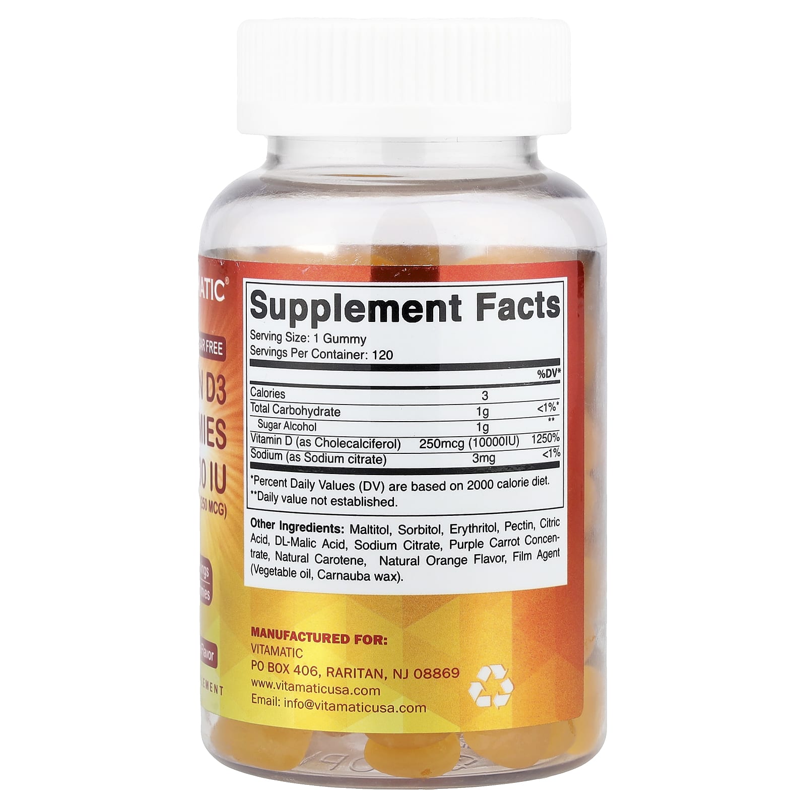 Vitamatic Gomas de Vitamina D3 Sabor Natural de Laranja 250 mcg (10.000 UI) 120 Gomas