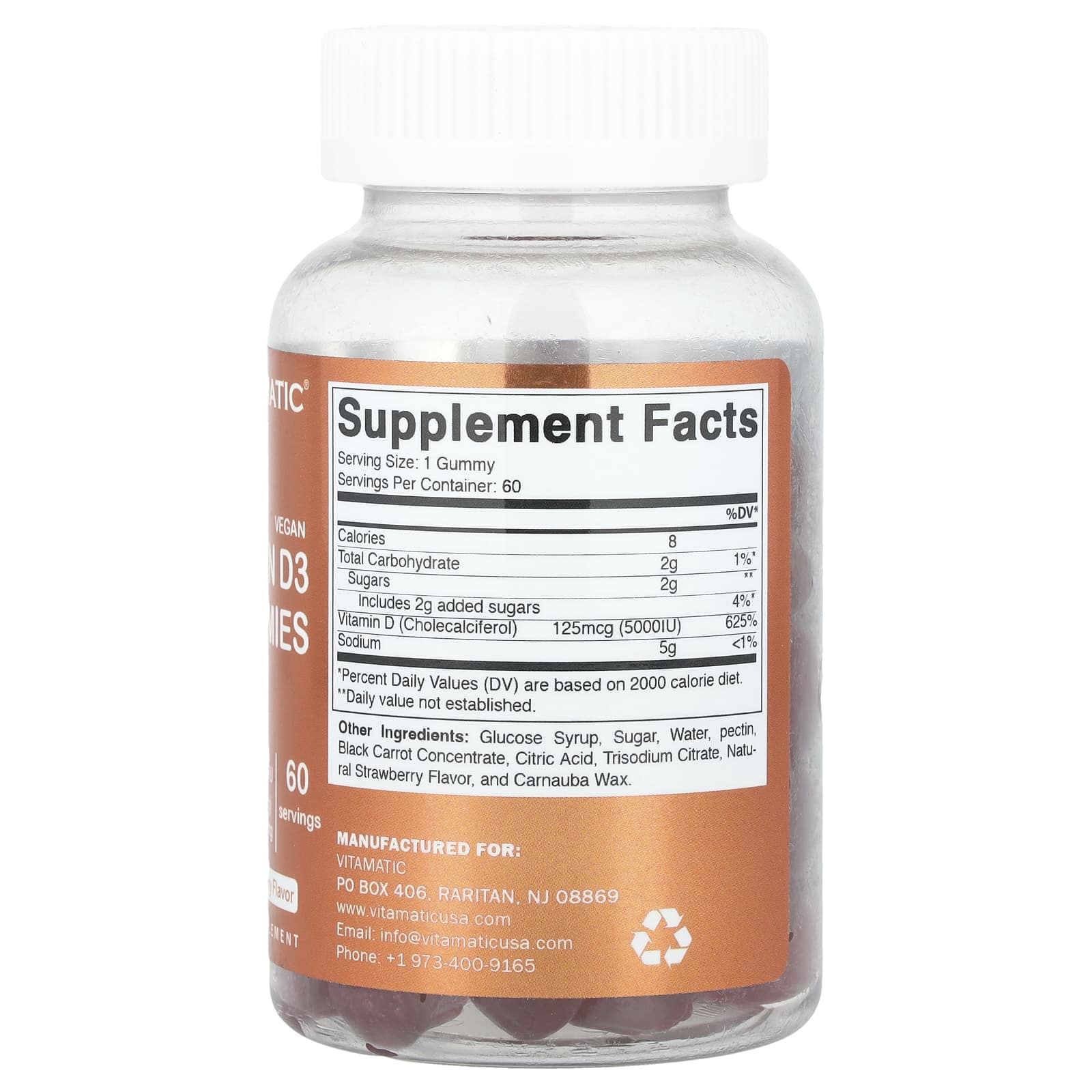 Vitamatic Gomas Veganas de Vitamina D3 Morango 125 mcg (5.000 UI) 60 Gomas – Vitamatic Suplementos Vitamins Vitamina D.