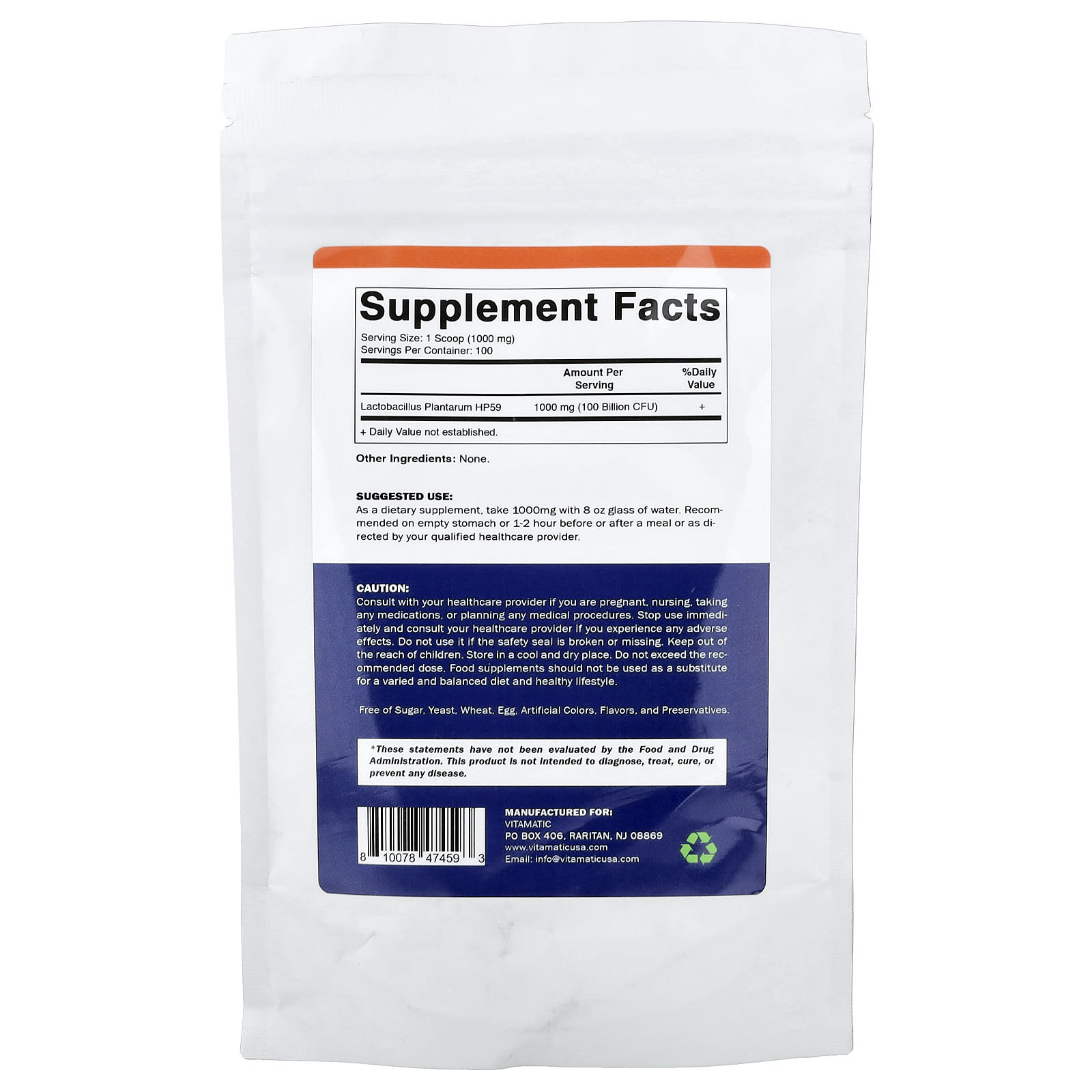 Vitamatic Lactobacillus Plantarum 100 g (35 oz) – Vitamatic Suplementos Saúde Intestinal Probióticos Lactobacillus.