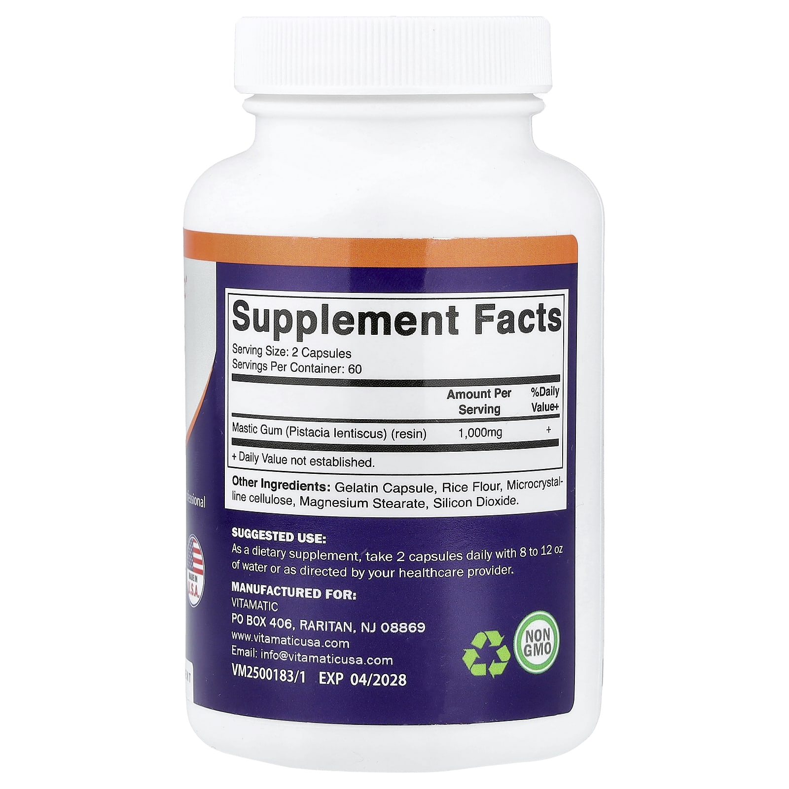 Vitamatic Mástique 120 Cápsulas (500 mg por Cápsula) – Vitamatic Suplementos Saúde Intestinal Mastic Gum.