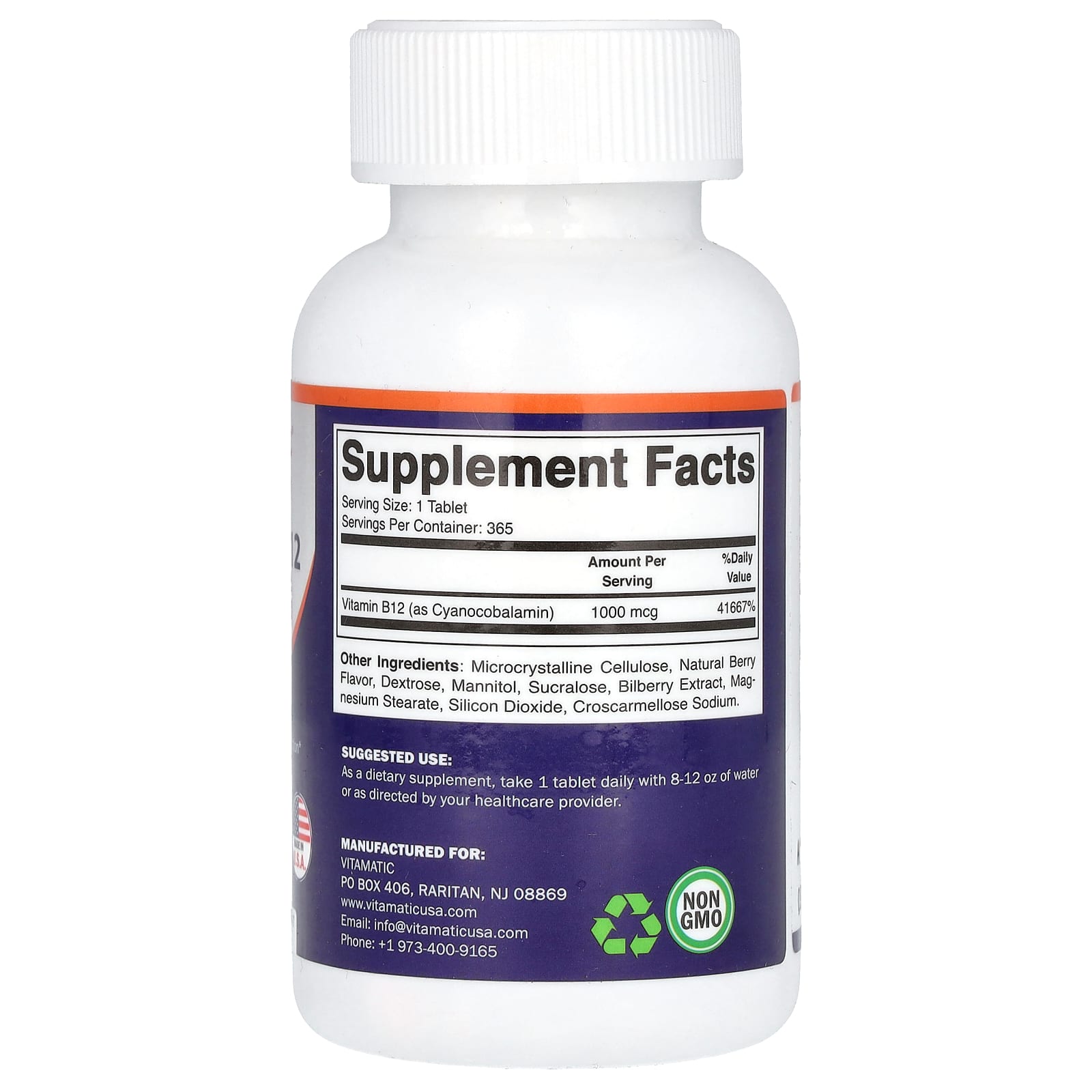 Vitamatic Vitamina B12 de Dissolução Rápida Fruto Silvestre 1.000 mcg 365 Comprimidos de Dissolução Rápida – Vitamatic Suplementos Vitaminas Vitamina B.
