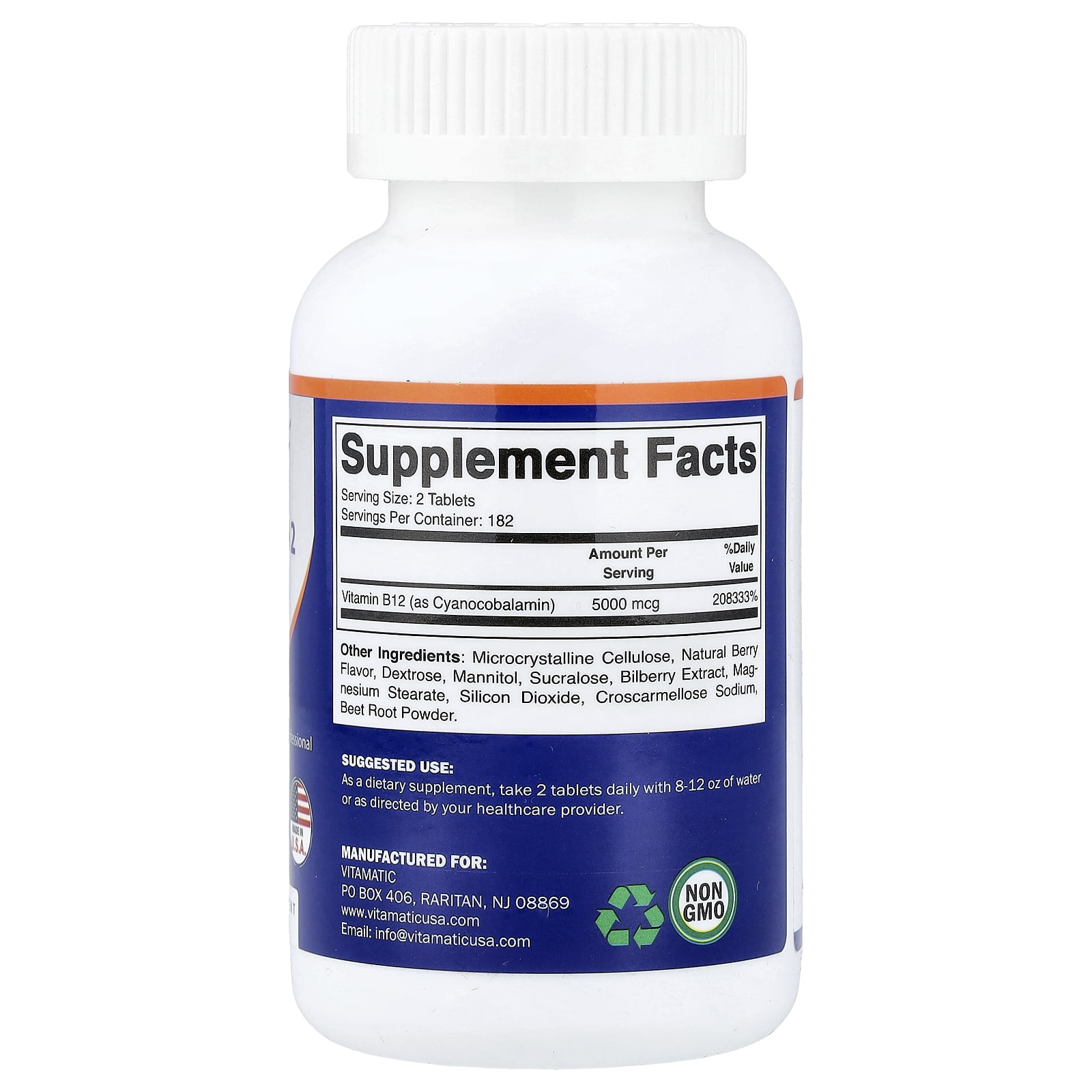 Vitamatic Vitamina B12 Fruto Silvestre Natural 365 Comprimidos de Dissolução Rápida (2.500 mcg por Comprimido)