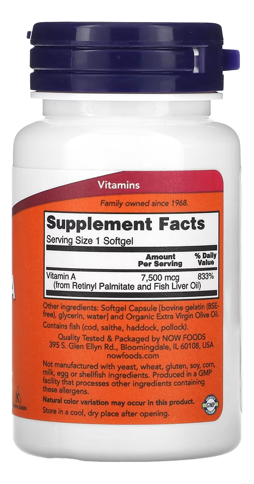 Vitamina A 7.500mcg Now Foods 100 Softgels Importado