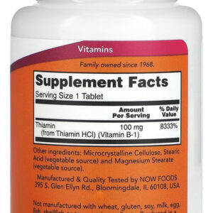 Vitamina B-1 100mg Now Foods 100 Tabs Veg – Importado