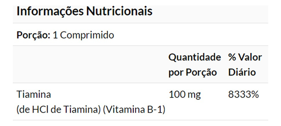 Os tabletes são formulados para rápida absorção, permitindo o máximo aproveitamento dos benefícios da tiamina. São fáceis de engolir e possuem uma dosagem prática e direta;