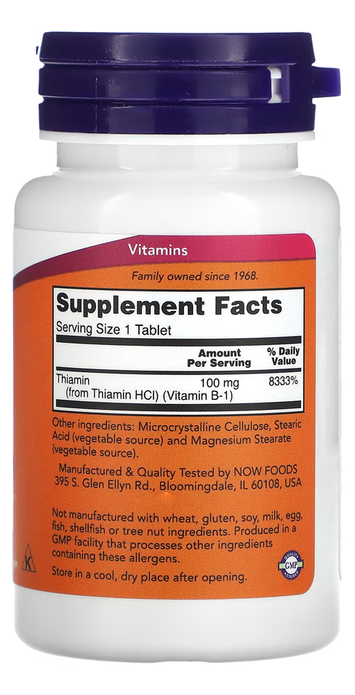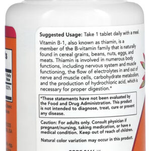A Vitamina B-1 (Tiamina) da Now Foods fornece 100mg desta vitamina do complexo B em cada tablete; A tiamina é essencial para o metabolismo dos carboidratos, gorduras e proteínas;