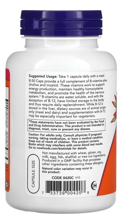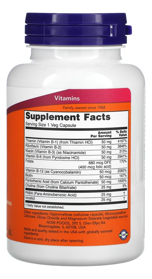 Vitamina B-50 Now Foods Vitaminas Complexo B 100veg Caps