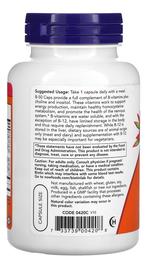 Vitamina B-50 Now Foods Vitaminas Complexo B 100Veg Caps – No Brasil