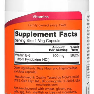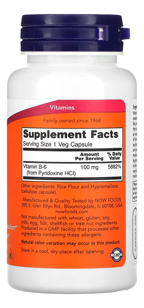 Vitamina B-6 100mg Now Foods 100 Cáps Importado